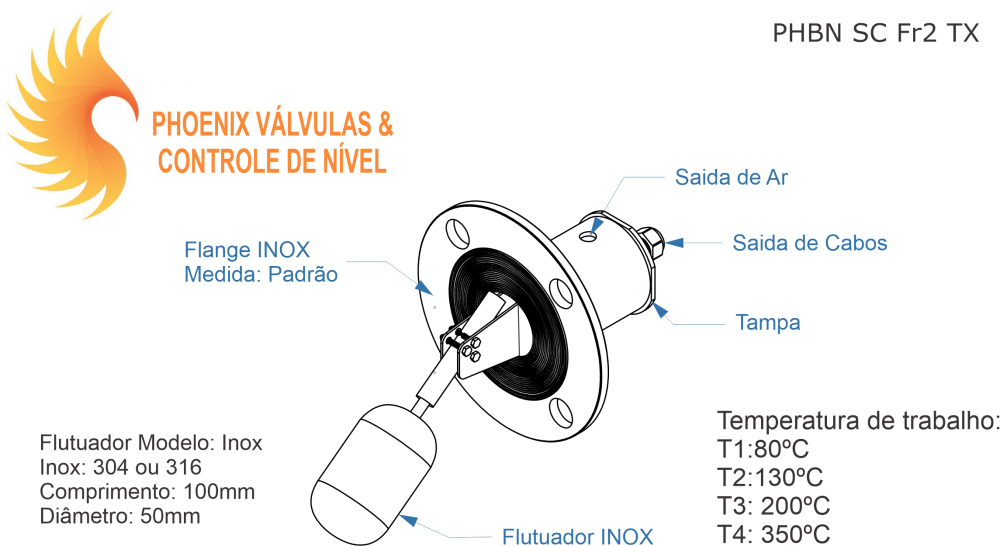 Boia de Nível Lateral Para Alta Temperatura